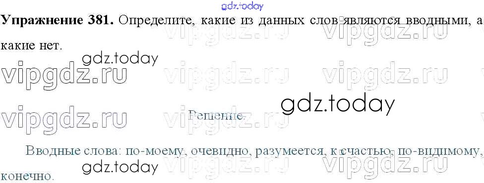 На страницах сайта gdz.today вы найдете учебный и вспомогательный материал, направленный на улучшения знаний школьной программы. ГДЗ - онлайн мир знаний Решение к упражнениям 381 Учебнику по Русскому языку для 8 класса Тростенцова, Ладыженская Просвещение 2014