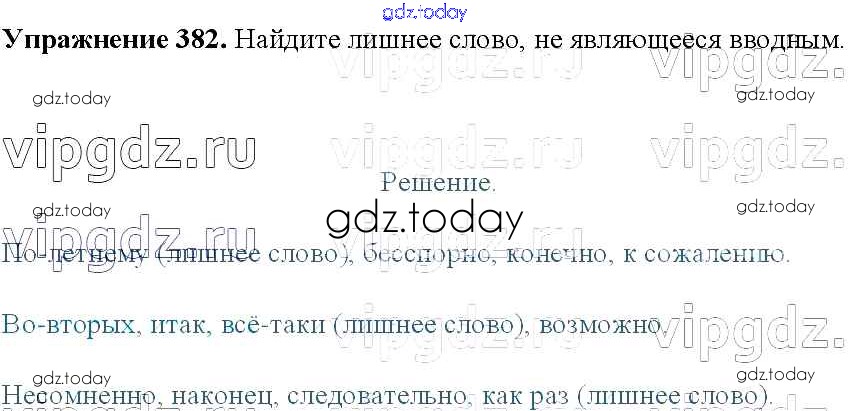 На страницах сайта gdz.today вы найдете учебный и вспомогательный материал, направленный на улучшения знаний школьной программы. ГДЗ - онлайн мир знаний Решение к упражнениям 382 Учебнику по Русскому языку для 8 класса Тростенцова, Ладыженская Просвещение 2014