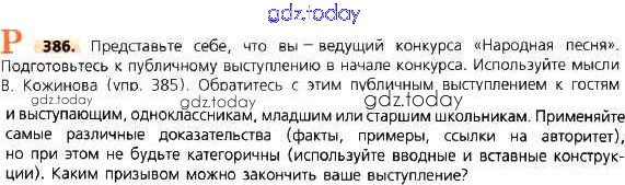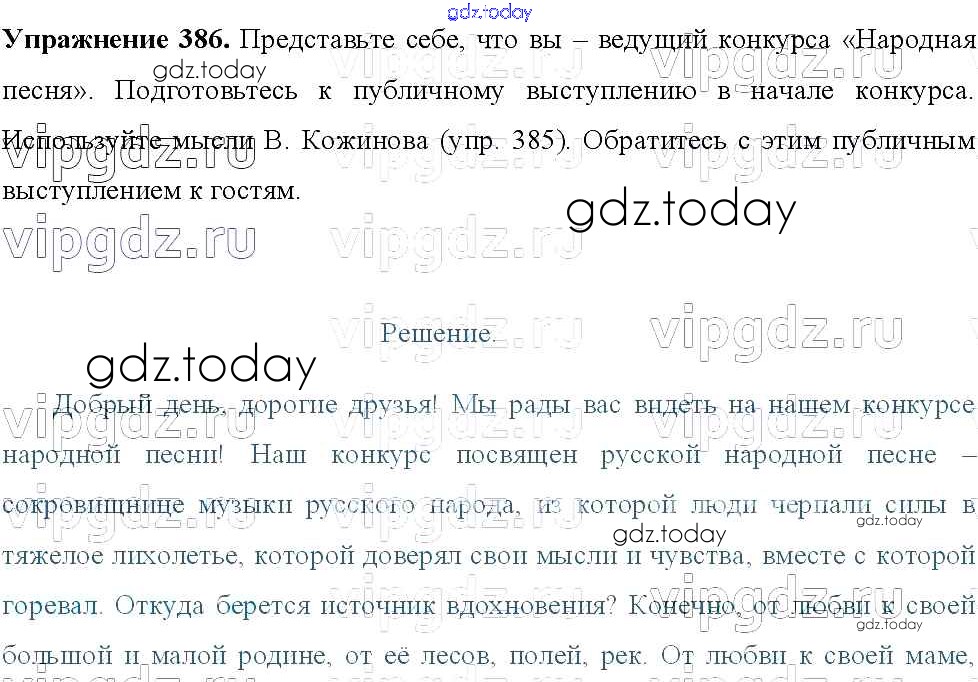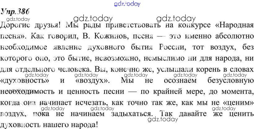 На страницах сайта gdz.today вы найдете учебный и вспомогательный материал, направленный на улучшения знаний школьной программы. ГДЗ - онлайн мир знаний Решение к упражнениям 386 Учебнику по Русскому языку для 8 класса Тростенцова, Ладыженская Просвещение 2014