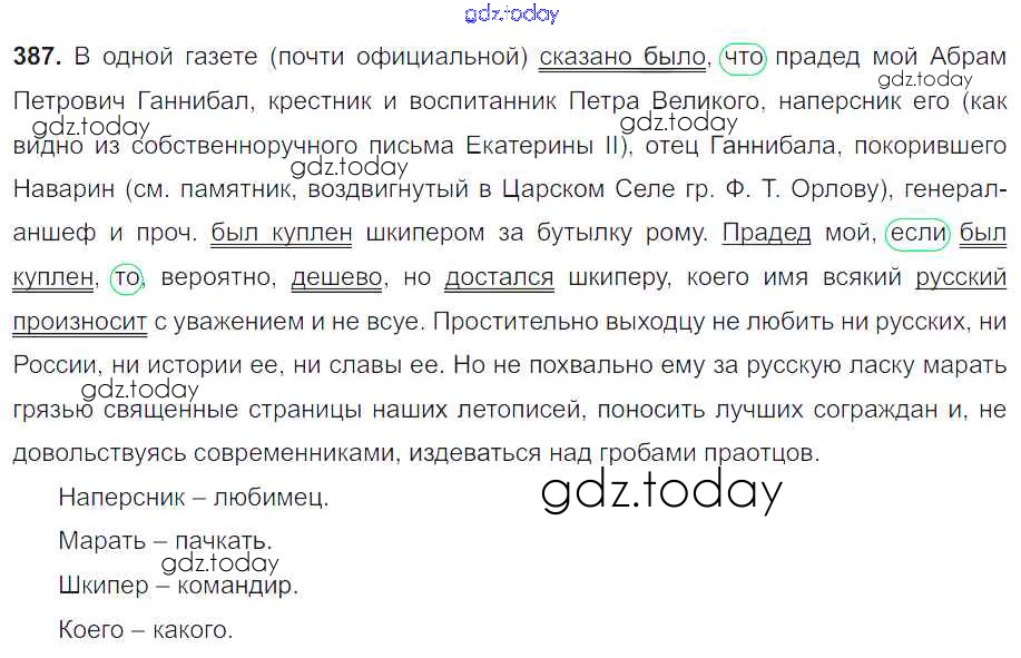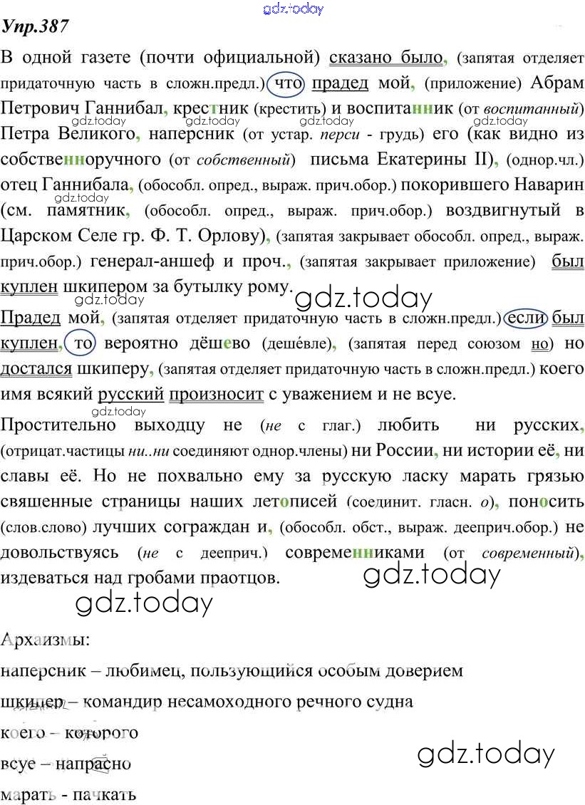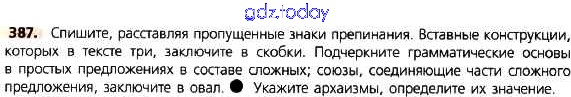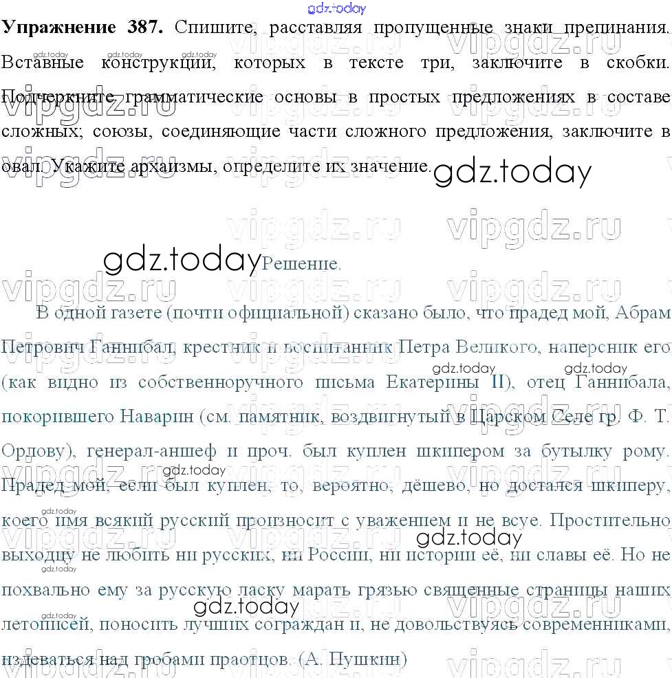 Ответы к Решение к упражнениям 387 Учебнику по Русскому языку для 8 класса Тростенцова, Ладыженская Просвещение 2014