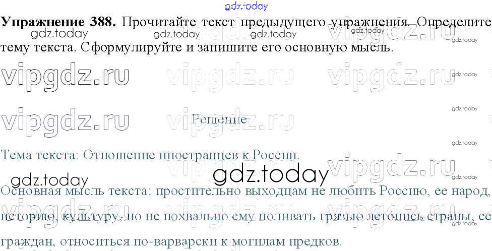 Ответы к Решение к упражнениям 388 Учебнику по Русскому языку для 8 класса Тростенцова, Ладыженская Просвещение 2014