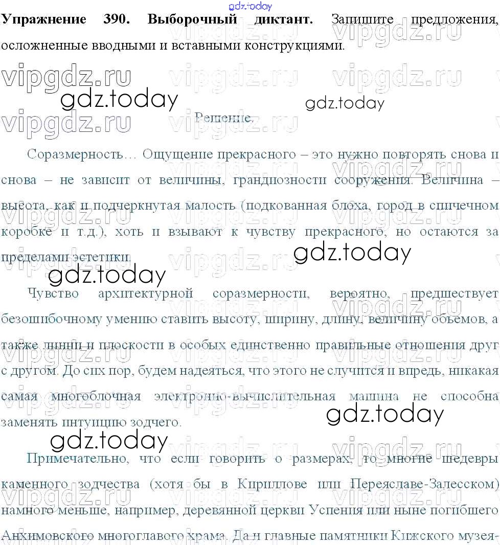 На страницах сайта gdz.today вы найдете учебный и вспомогательный материал, направленный на улучшения знаний школьной программы. ГДЗ - онлайн мир знаний Решение к упражнениям 390 Учебнику по Русскому языку для 8 класса Тростенцова, Ладыженская Просвещение 2014