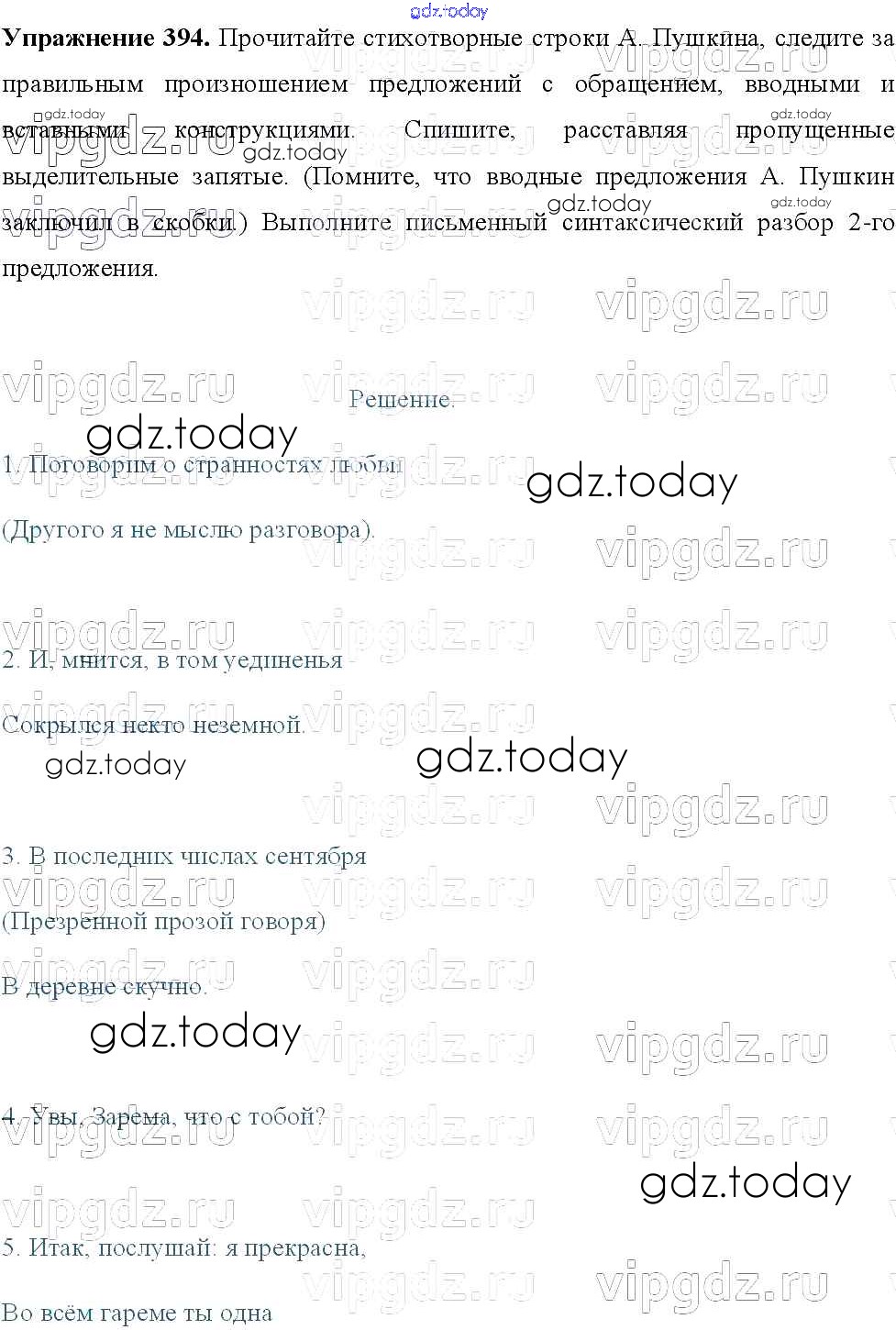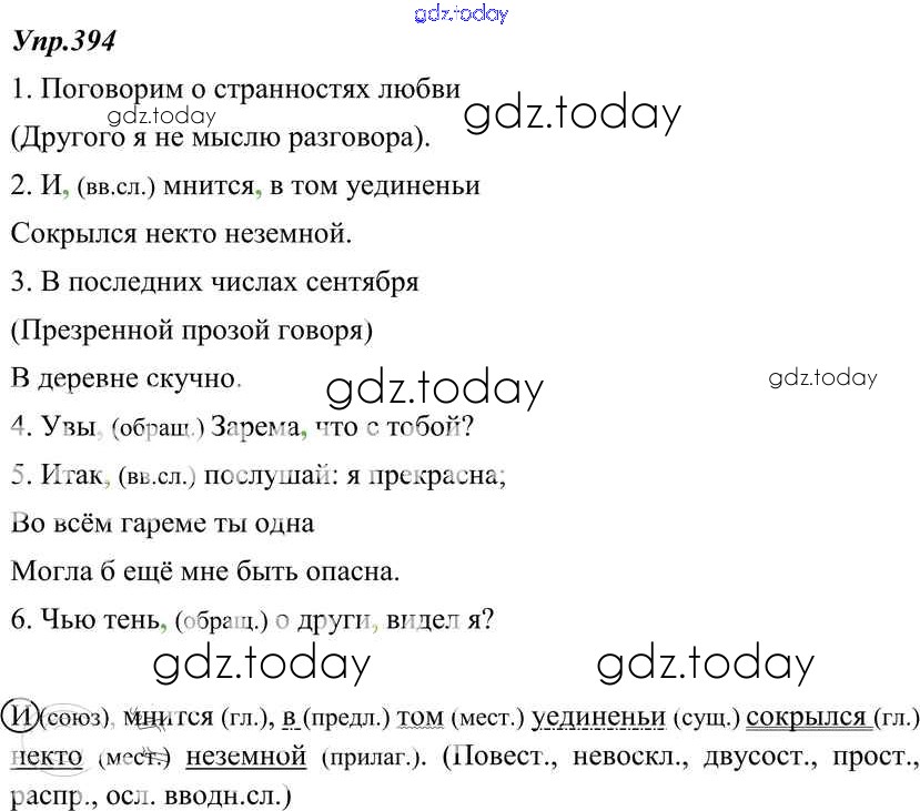 Ответы к Решение к упражнениям 394 Учебнику по Русскому языку для 8 класса Тростенцова, Ладыженская Просвещение 2014