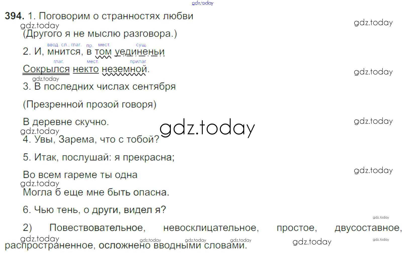 На страницах сайта gdz.today вы найдете учебный и вспомогательный материал, направленный на улучшения знаний школьной программы. ГДЗ - онлайн мир знаний Решение к упражнениям 394 Учебнику по Русскому языку для 8 класса Тростенцова, Ладыженская Просвещение 2014