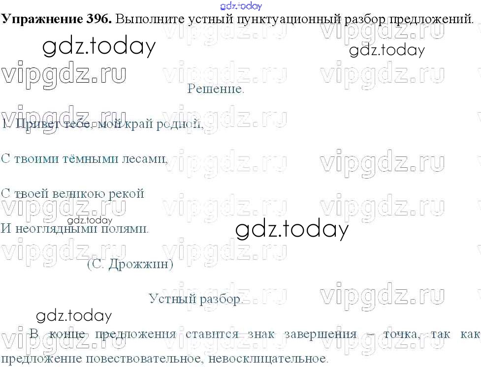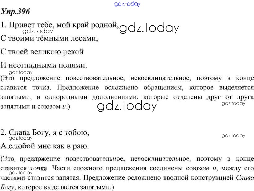 На страницах сайта gdz.today вы найдете учебный и вспомогательный материал, направленный на улучшения знаний школьной программы. ГДЗ - онлайн мир знаний Решение к упражнениям 396 Учебнику по Русскому языку для 8 класса Тростенцова, Ладыженская Просвещение 2014