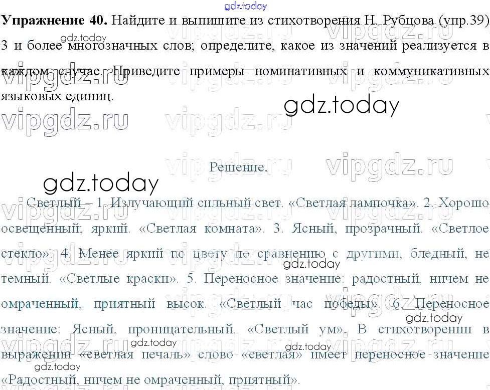На страницах сайта gdz.today вы найдете учебный и вспомогательный материал, направленный на улучшения знаний школьной программы. ГДЗ - онлайн мир знаний Решение к упражнениям 40 Учебнику по Русскому языку для 8 класса Тростенцова, Ладыженская Просвещение 2014