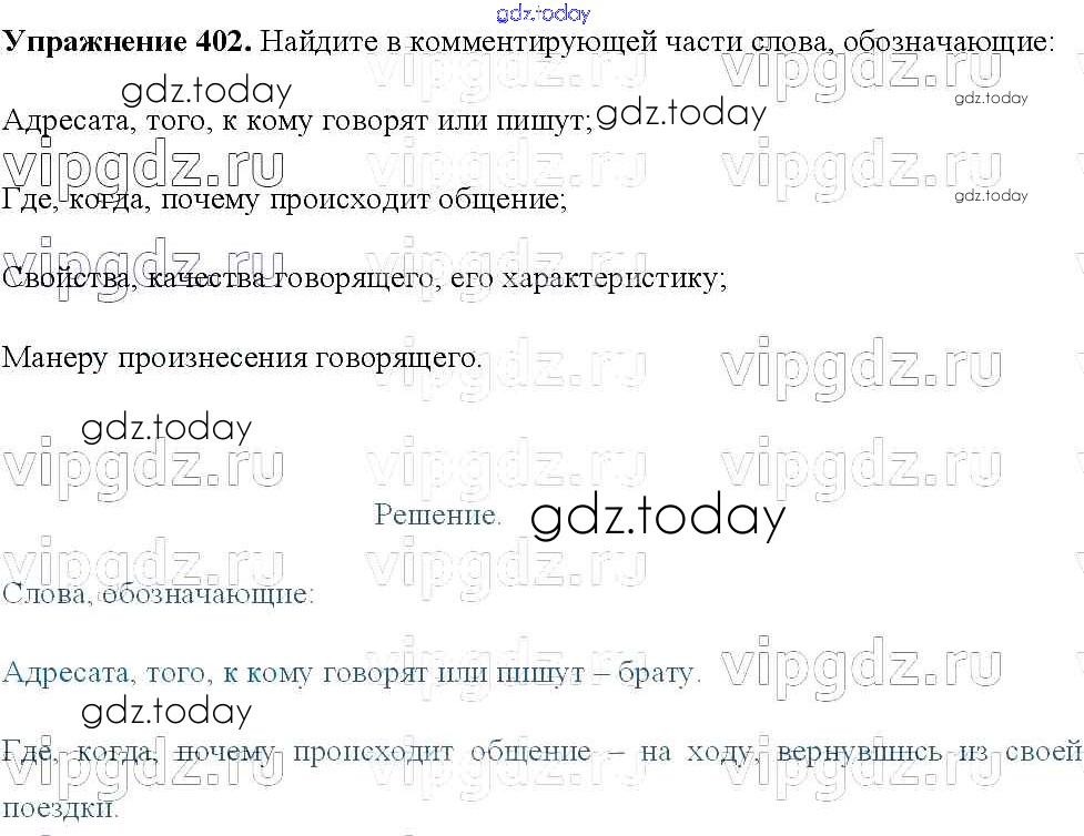 Ответы к Решение к упражнениям 402 Учебнику по Русскому языку для 8 класса Тростенцова, Ладыженская Просвещение 2014