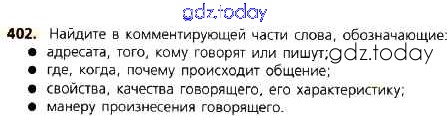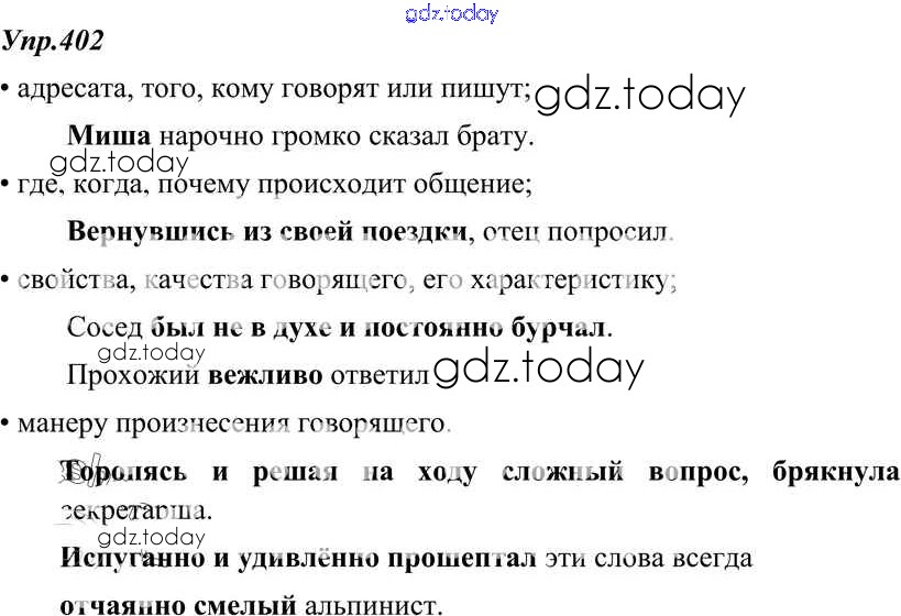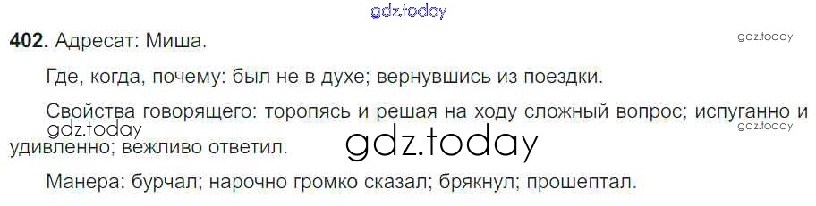 На страницах сайта gdz.today вы найдете учебный и вспомогательный материал, направленный на улучшения знаний школьной программы. ГДЗ - онлайн мир знаний Решение к упражнениям 402 Учебнику по Русскому языку для 8 класса Тростенцова, Ладыженская Просвещение 2014