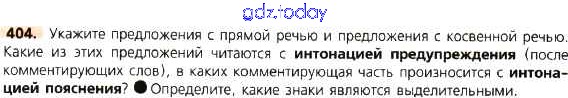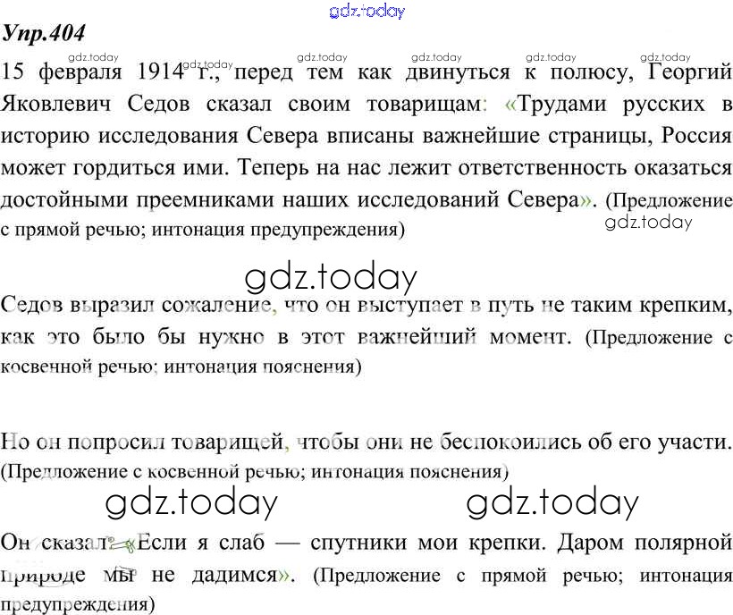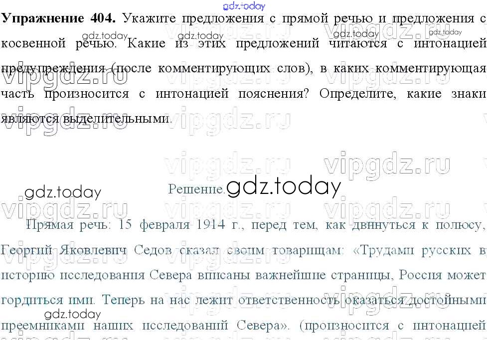 Ответы к Решение к упражнениям 404 Учебнику по Русскому языку для 8 класса Тростенцова, Ладыженская Просвещение 2014