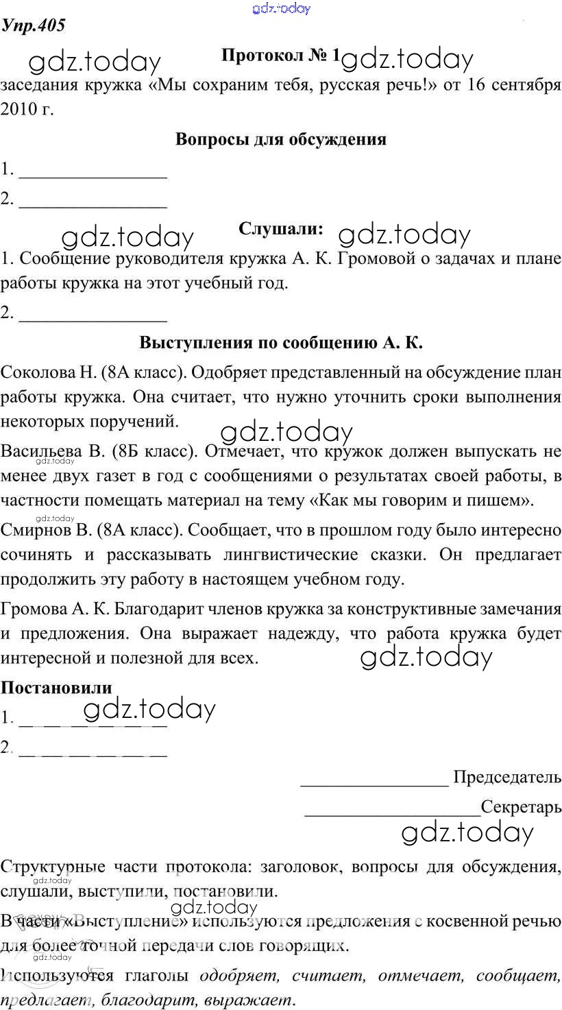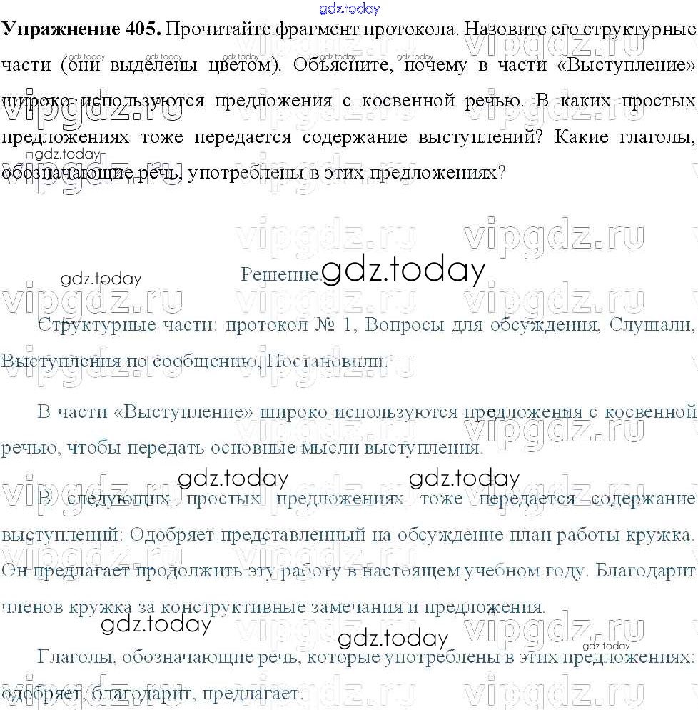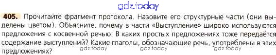 На страницах сайта gdz.today вы найдете учебный и вспомогательный материал, направленный на улучшения знаний школьной программы. ГДЗ - онлайн мир знаний Решение к упражнениям 405 Учебнику по Русскому языку для 8 класса Тростенцова, Ладыженская Просвещение 2014