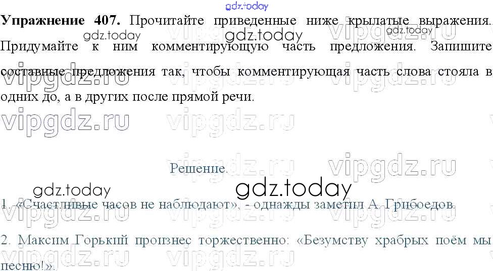Ответы к Решение к упражнениям 407 Учебнику по Русскому языку для 8 класса Тростенцова, Ладыженская Просвещение 2014