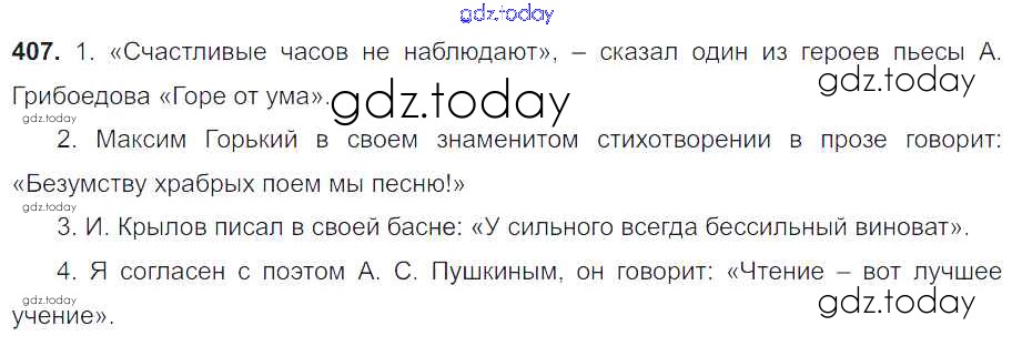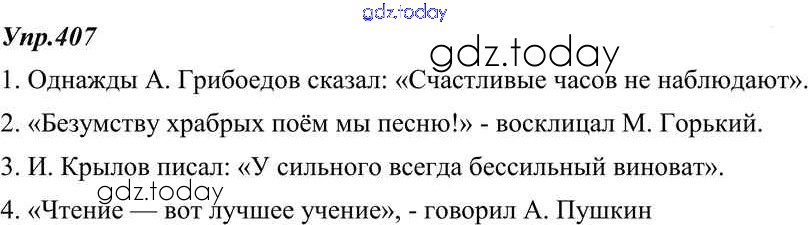 На страницах сайта gdz.today вы найдете учебный и вспомогательный материал, направленный на улучшения знаний школьной программы. ГДЗ - онлайн мир знаний Решение к упражнениям 407 Учебнику по Русскому языку для 8 класса Тростенцова, Ладыженская Просвещение 2014