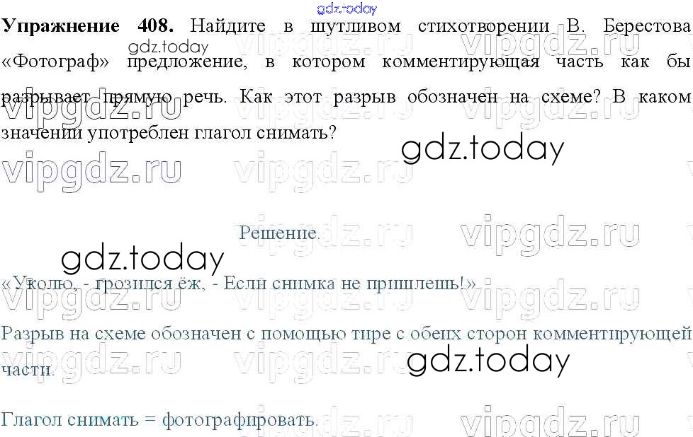 Ответы к Решение к упражнениям 408 Учебнику по Русскому языку для 8 класса Тростенцова, Ладыженская Просвещение 2014