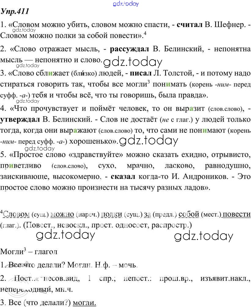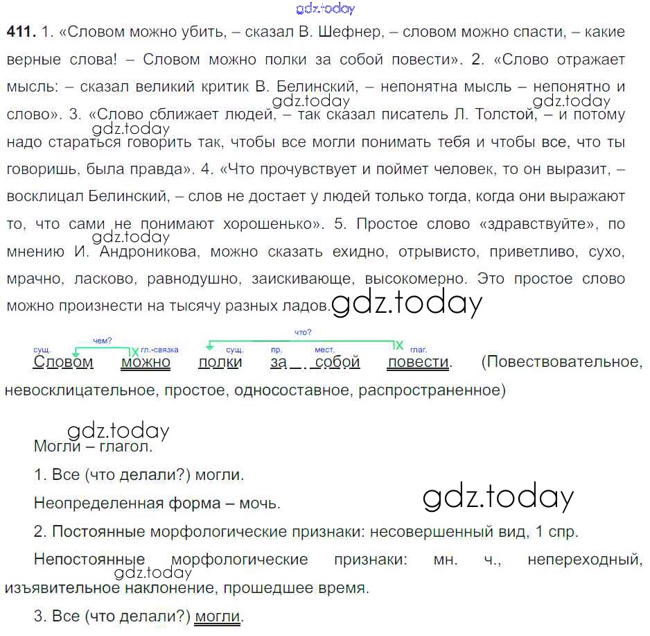 На страницах сайта gdz.today вы найдете учебный и вспомогательный материал, направленный на улучшения знаний школьной программы. ГДЗ - онлайн мир знаний Решение к упражнениям 411 Учебнику по Русскому языку для 8 класса Тростенцова, Ладыженская Просвещение 2014