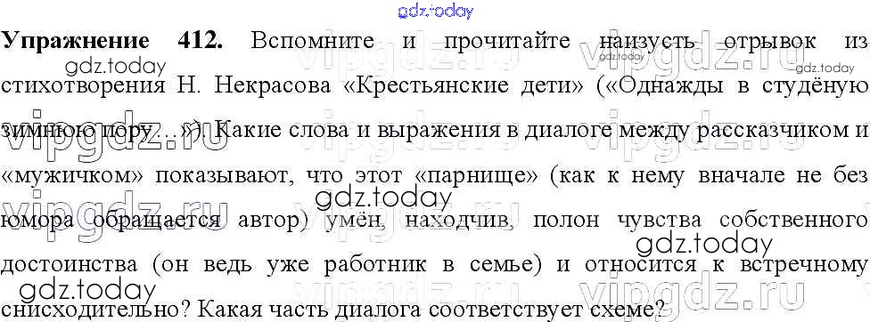 Ответы к Решение к упражнениям 412 Учебнику по Русскому языку для 8 класса Тростенцова, Ладыженская Просвещение 2014