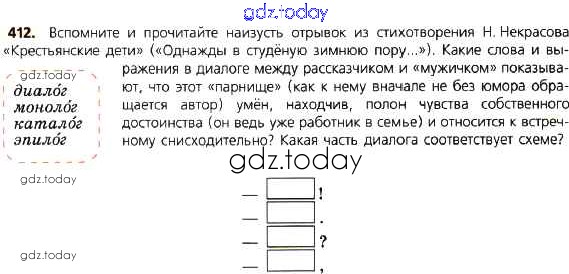 На страницах сайта gdz.today вы найдете учебный и вспомогательный материал, направленный на улучшения знаний школьной программы. ГДЗ - онлайн мир знаний Решение к упражнениям 412 Учебнику по Русскому языку для 8 класса Тростенцова, Ладыженская Просвещение 2014