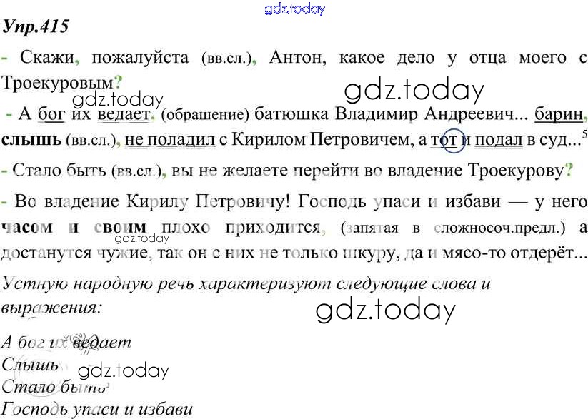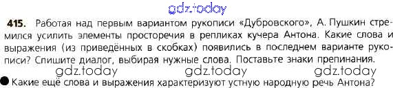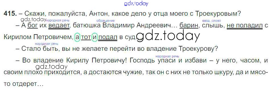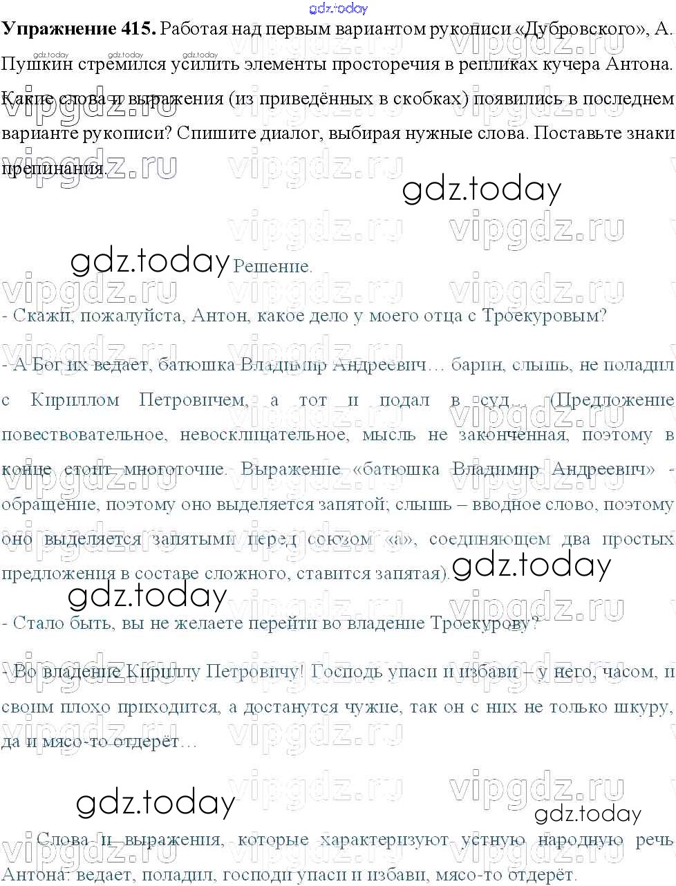 Ответы к Решение к упражнениям 415 Учебнику по Русскому языку для 8 класса Тростенцова, Ладыженская Просвещение 2014