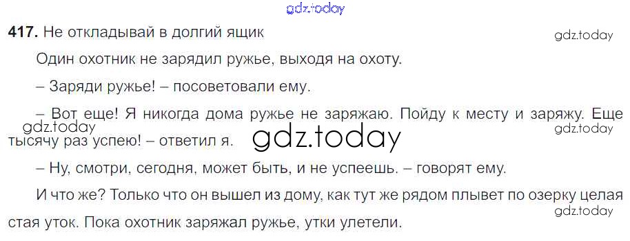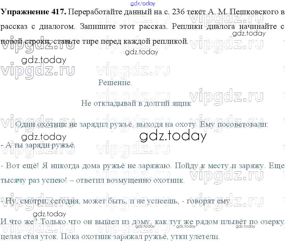 На страницах сайта gdz.today вы найдете учебный и вспомогательный материал, направленный на улучшения знаний школьной программы. ГДЗ - онлайн мир знаний Решение к упражнениям 417 Учебнику по Русскому языку для 8 класса Тростенцова, Ладыженская Просвещение 2014