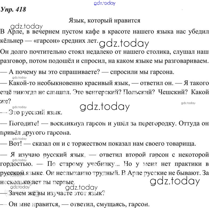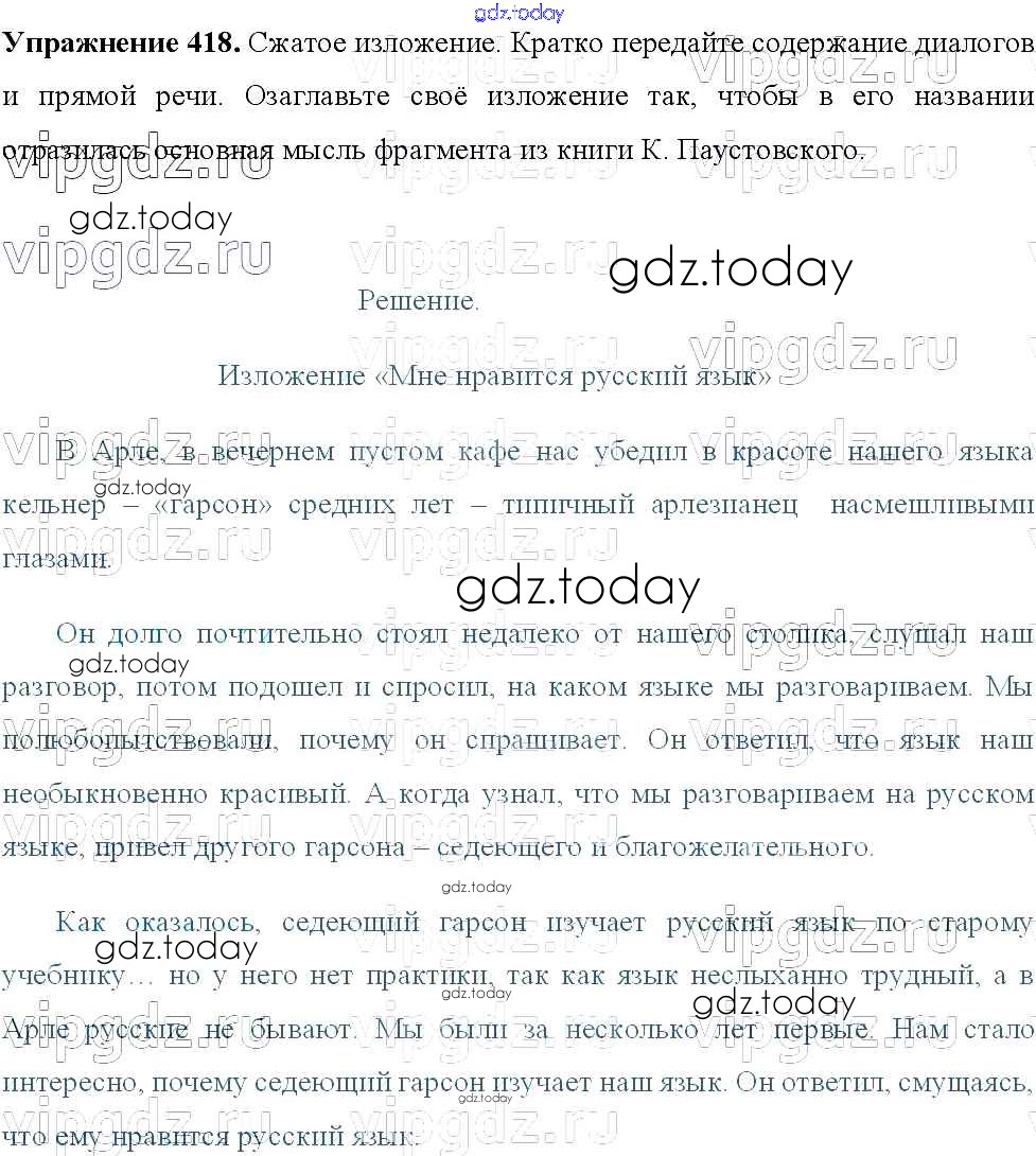 На страницах сайта gdz.today вы найдете учебный и вспомогательный материал, направленный на улучшения знаний школьной программы. ГДЗ - онлайн мир знаний Решение к упражнениям 418 Учебнику по Русскому языку для 8 класса Тростенцова, Ладыженская Просвещение 2014