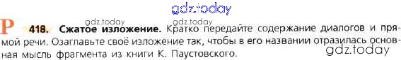 Ответы к Решение к упражнениям 418 Учебнику по Русскому языку для 8 класса Тростенцова, Ладыженская Просвещение 2014