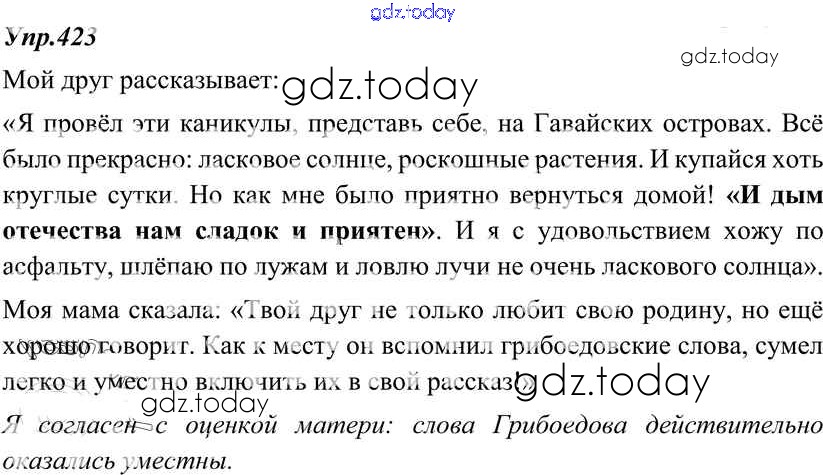 На страницах сайта gdz.today вы найдете учебный и вспомогательный материал, направленный на улучшения знаний школьной программы. ГДЗ - онлайн мир знаний Решение к упражнениям 423 Учебнику по Русскому языку для 8 класса Тростенцова, Ладыженская Просвещение 2014