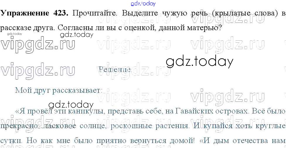 Ответы к Решение к упражнениям 423 Учебнику по Русскому языку для 8 класса Тростенцова, Ладыженская Просвещение 2014