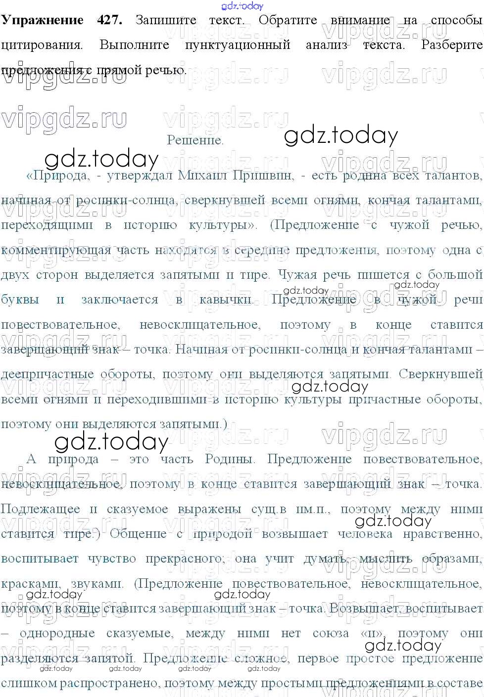 Ответы к Решение к упражнениям 427 Учебнику по Русскому языку для 8 класса Тростенцова, Ладыженская Просвещение 2014