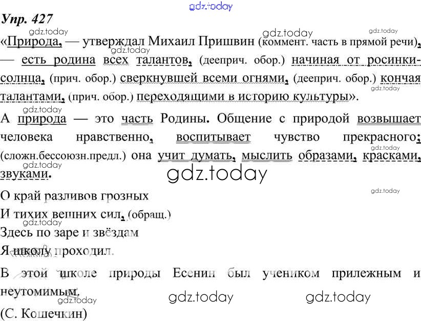 На страницах сайта gdz.today вы найдете учебный и вспомогательный материал, направленный на улучшения знаний школьной программы. ГДЗ - онлайн мир знаний Решение к упражнениям 427 Учебнику по Русскому языку для 8 класса Тростенцова, Ладыженская Просвещение 2014
