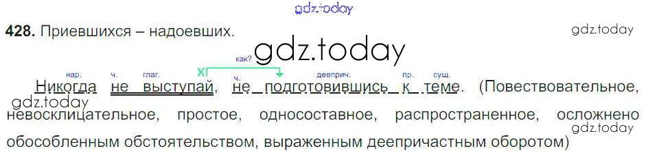 На страницах сайта gdz.today вы найдете учебный и вспомогательный материал, направленный на улучшения знаний школьной программы. ГДЗ - онлайн мир знаний Решение к упражнениям 428 Учебнику по Русскому языку для 8 класса Тростенцова, Ладыженская Просвещение 2014