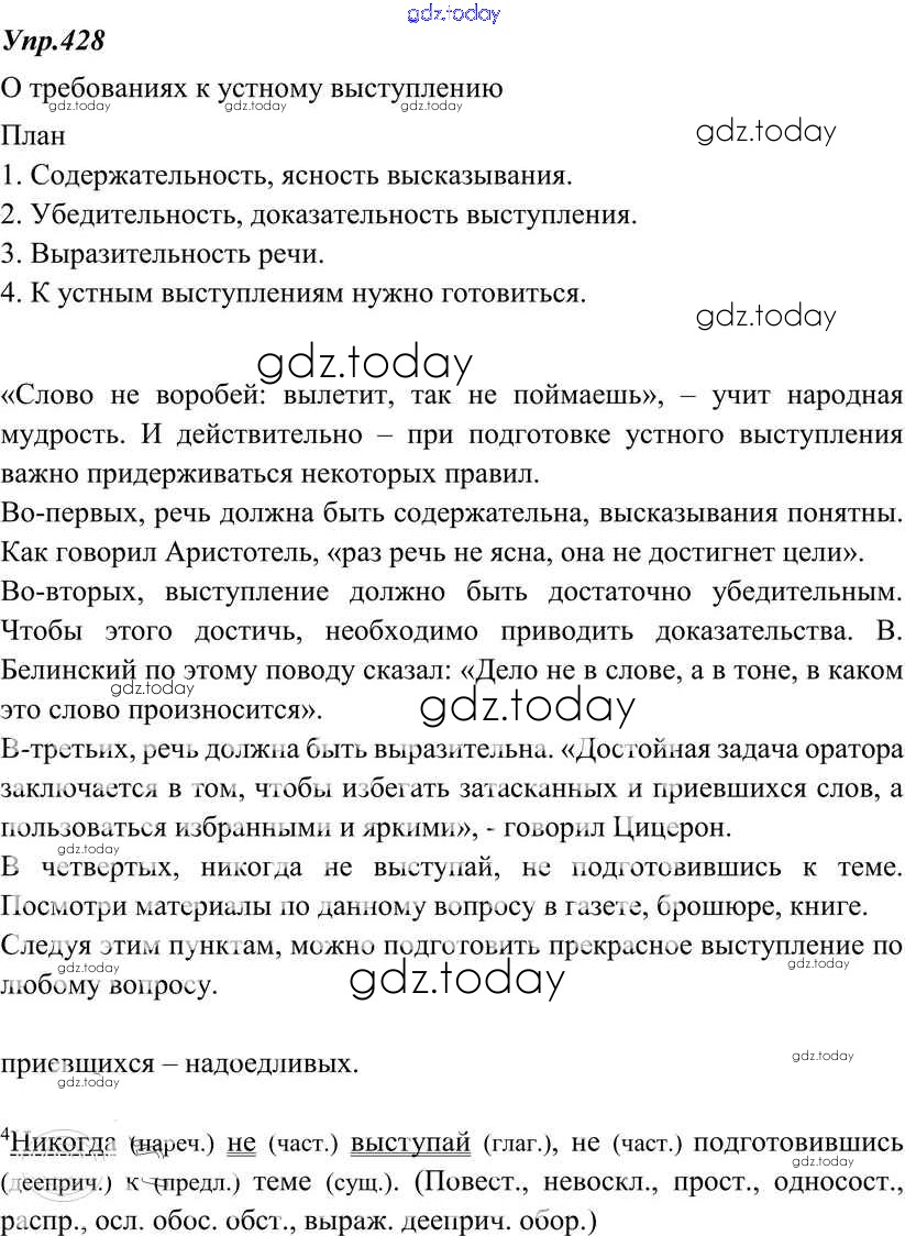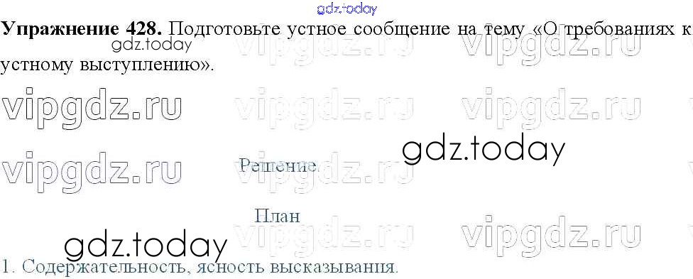 Ответы к Решение к упражнениям 428 Учебнику по Русскому языку для 8 класса Тростенцова, Ладыженская Просвещение 2014