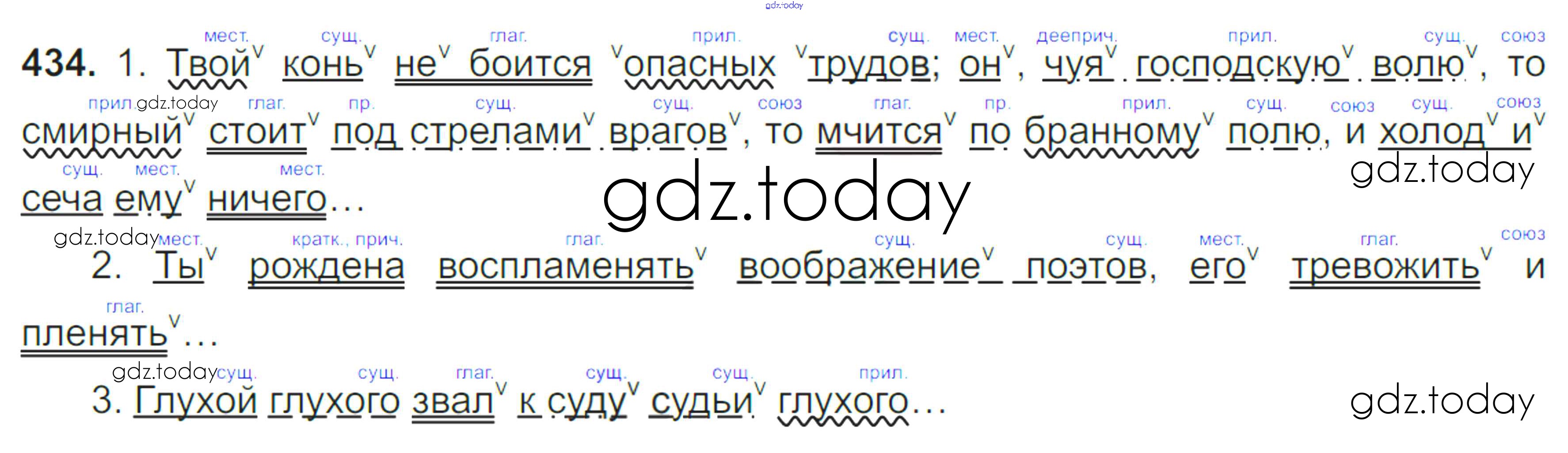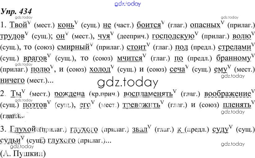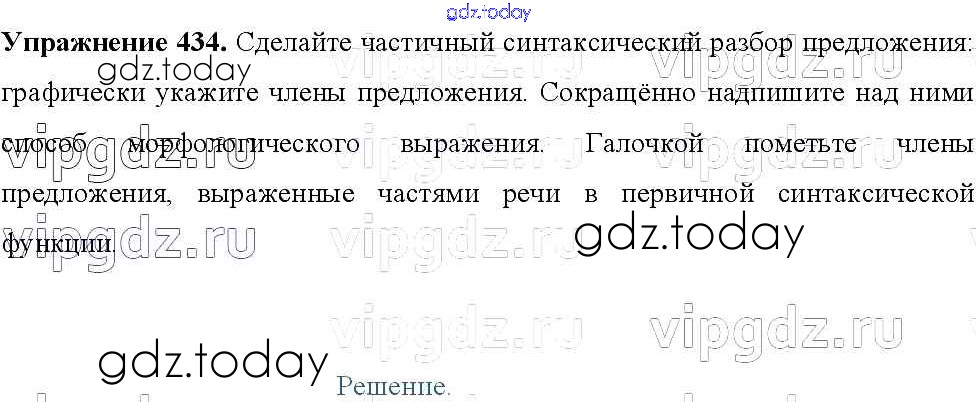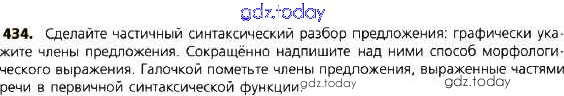 На страницах сайта gdz.today вы найдете учебный и вспомогательный материал, направленный на улучшения знаний школьной программы. ГДЗ - онлайн мир знаний Решение к упражнениям 434 Учебнику по Русскому языку для 8 класса Тростенцова, Ладыженская Просвещение 2014