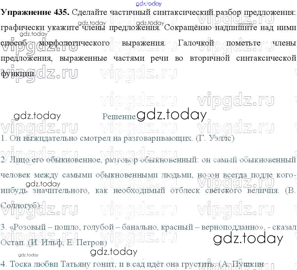 Ответы к Решение к упражнениям 435 Учебнику по Русскому языку для 8 класса Тростенцова, Ладыженская Просвещение 2014