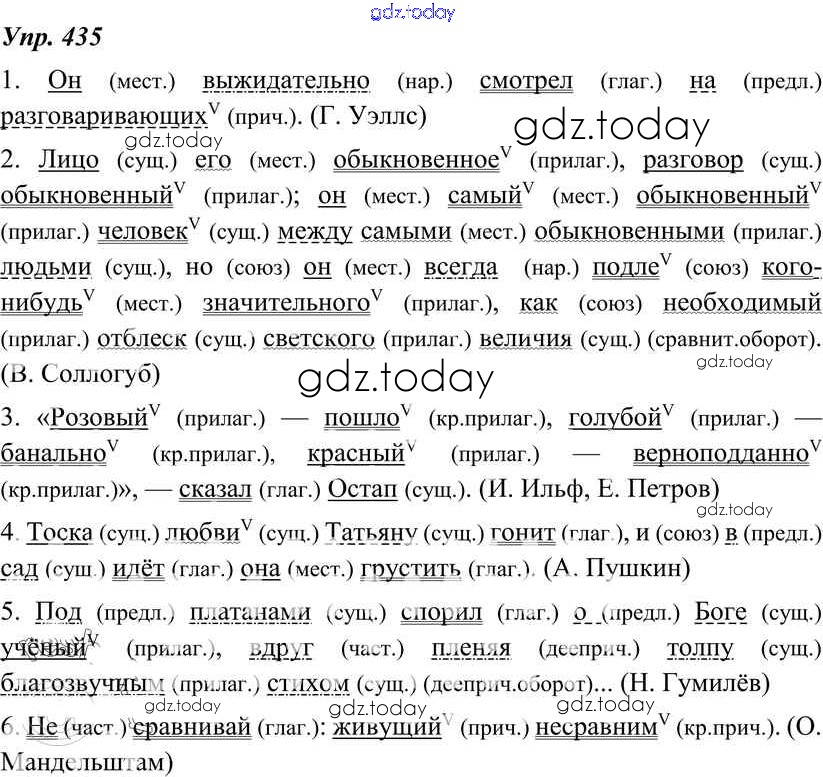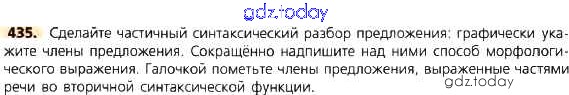 На страницах сайта gdz.today вы найдете учебный и вспомогательный материал, направленный на улучшения знаний школьной программы. ГДЗ - онлайн мир знаний Решение к упражнениям 435 Учебнику по Русскому языку для 8 класса Тростенцова, Ладыженская Просвещение 2014