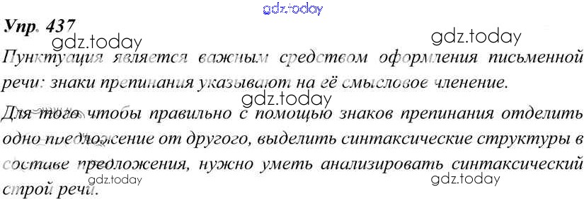 На страницах сайта gdz.today вы найдете учебный и вспомогательный материал, направленный на улучшения знаний школьной программы. ГДЗ - онлайн мир знаний Решение к упражнениям 437 Учебнику по Русскому языку для 8 класса Тростенцова, Ладыженская Просвещение 2014