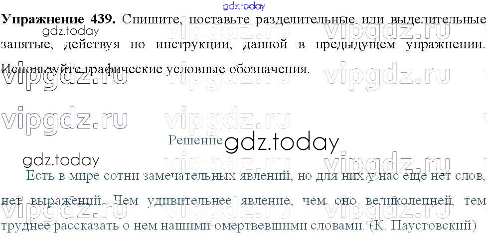Ответы к Решение к упражнениям 439 Учебнику по Русскому языку для 8 класса Тростенцова, Ладыженская Просвещение 2014