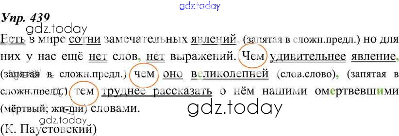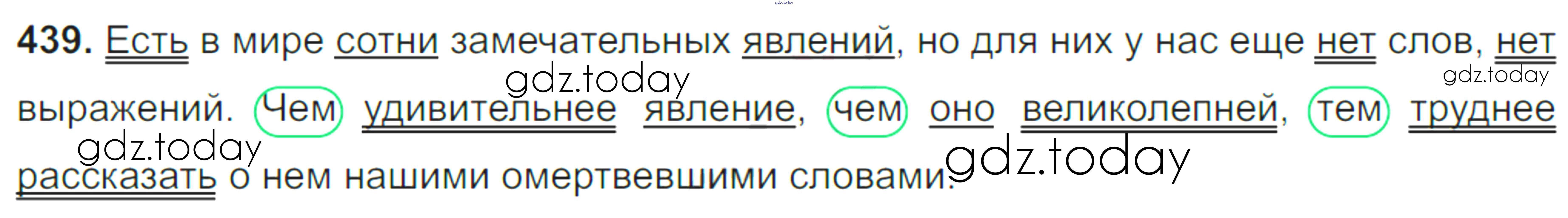 На страницах сайта gdz.today вы найдете учебный и вспомогательный материал, направленный на улучшения знаний школьной программы. ГДЗ - онлайн мир знаний Решение к упражнениям 439 Учебнику по Русскому языку для 8 класса Тростенцова, Ладыженская Просвещение 2014