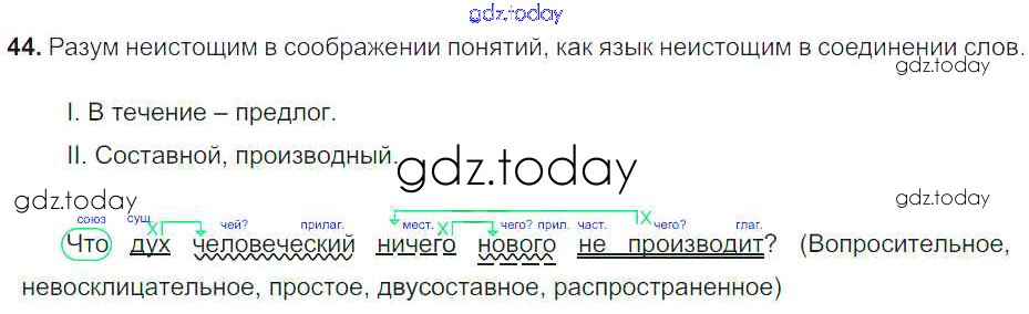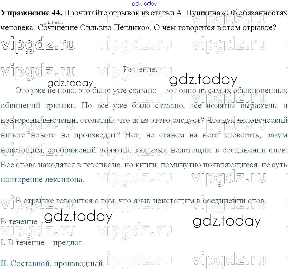 Ответы к Решение к упражнениям 44 Учебнику по Русскому языку для 8 класса Тростенцова, Ладыженская Просвещение 2014