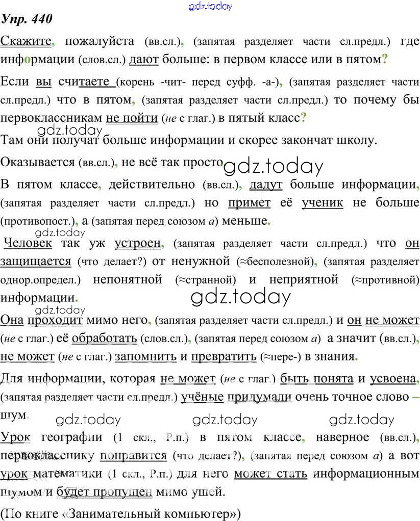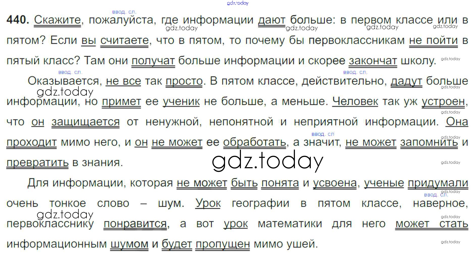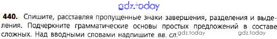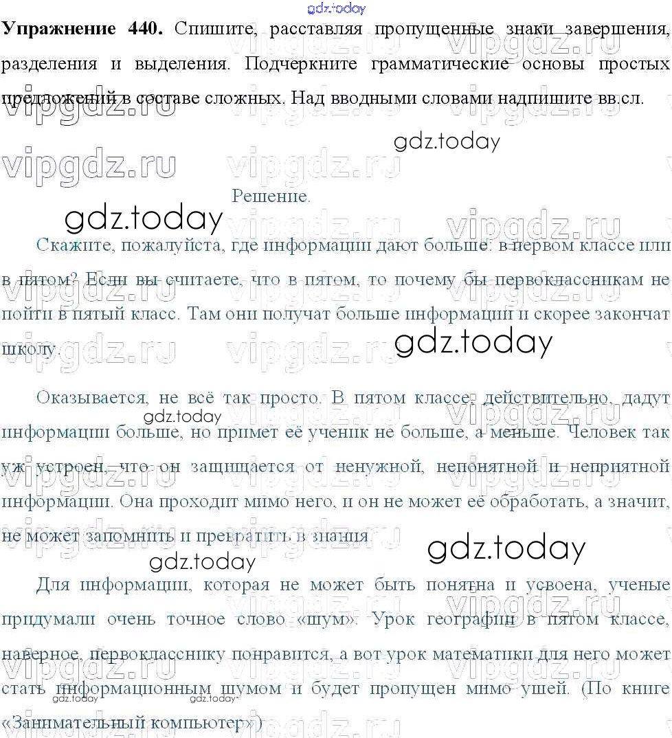 На страницах сайта gdz.today вы найдете учебный и вспомогательный материал, направленный на улучшения знаний школьной программы. ГДЗ - онлайн мир знаний Решение к упражнениям 440 Учебнику по Русскому языку для 8 класса Тростенцова, Ладыженская Просвещение 2014