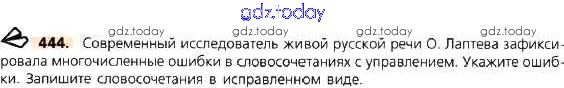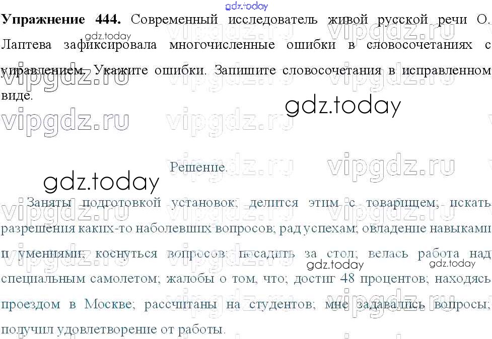 Ответы к Решение к упражнениям 444 Учебнику по Русскому языку для 8 класса Тростенцова, Ладыженская Просвещение 2014