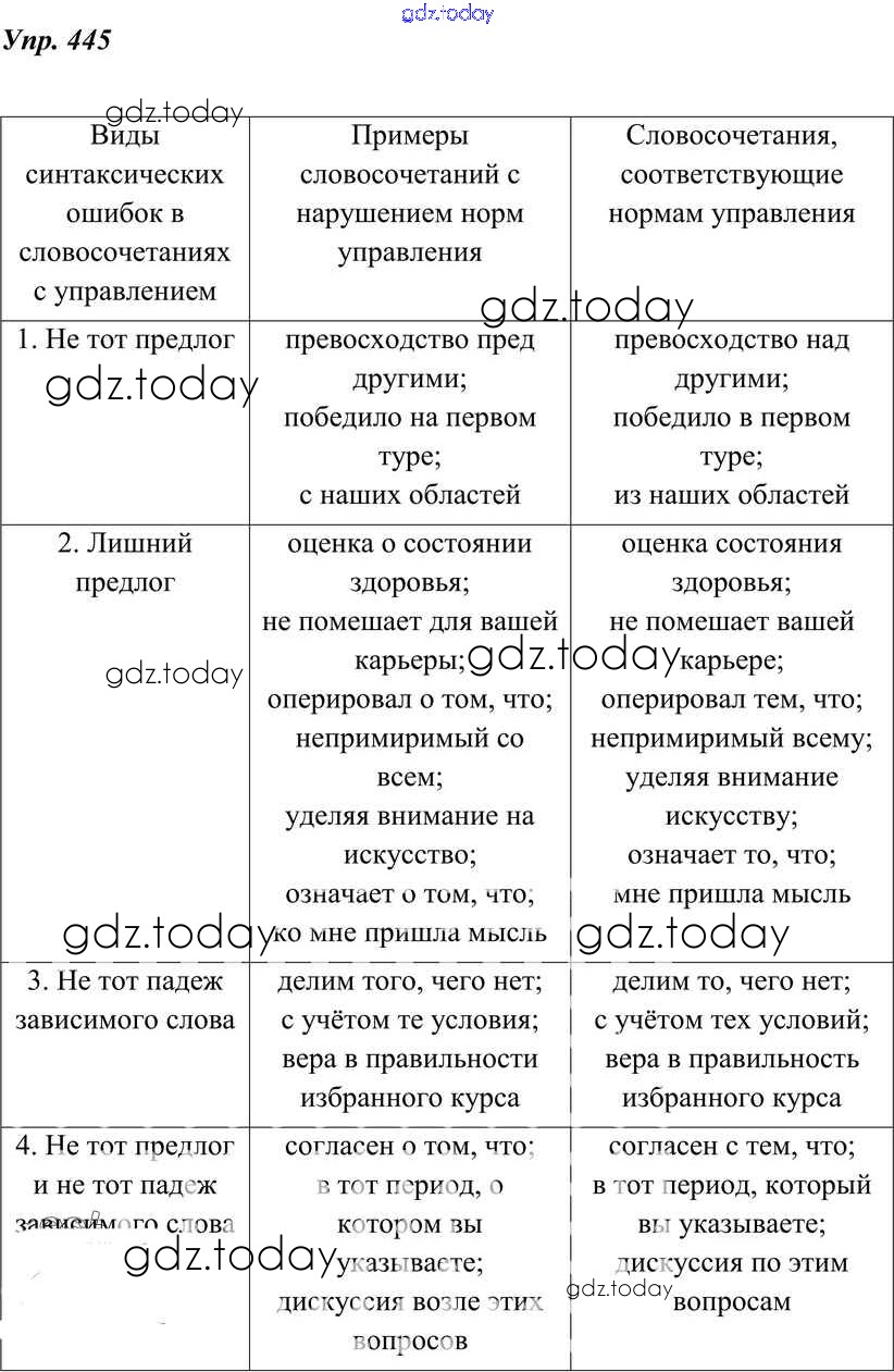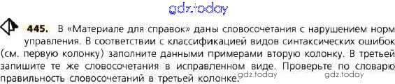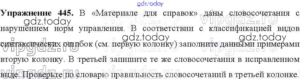 На страницах сайта gdz.today вы найдете учебный и вспомогательный материал, направленный на улучшения знаний школьной программы. ГДЗ - онлайн мир знаний Решение к упражнениям 445 Учебнику по Русскому языку для 8 класса Тростенцова, Ладыженская Просвещение 2014