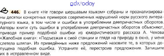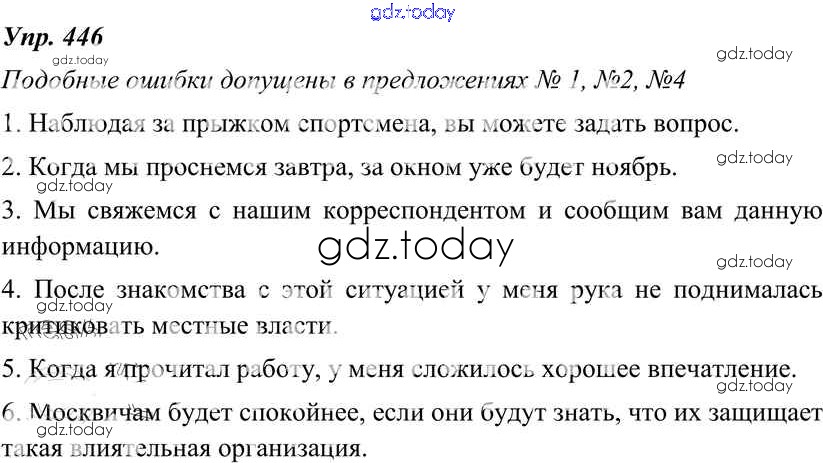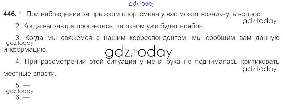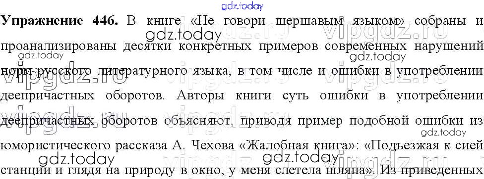На страницах сайта gdz.today вы найдете учебный и вспомогательный материал, направленный на улучшения знаний школьной программы. ГДЗ - онлайн мир знаний Решение к упражнениям 446 Учебнику по Русскому языку для 8 класса Тростенцова, Ладыженская Просвещение 2014