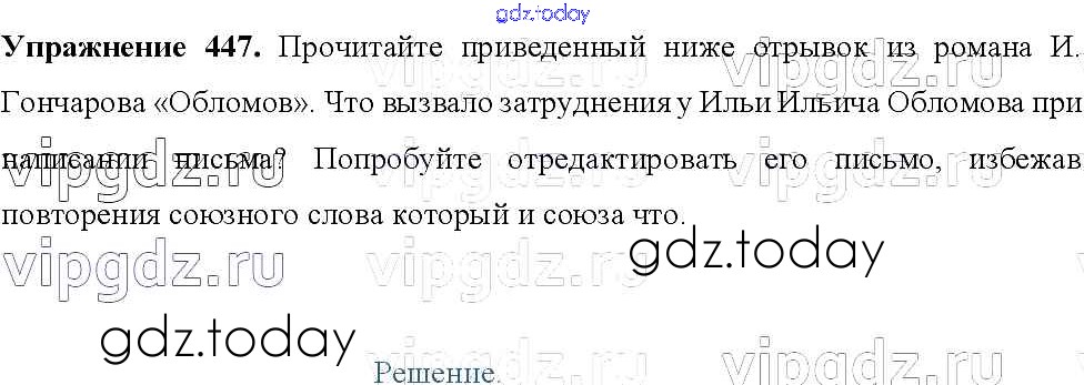 Ответы к Решение к упражнениям 447 Учебнику по Русскому языку для 8 класса Тростенцова, Ладыженская Просвещение 2014