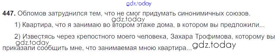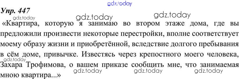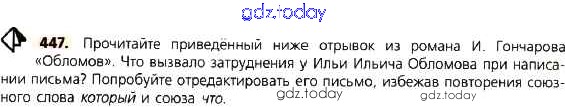 На страницах сайта gdz.today вы найдете учебный и вспомогательный материал, направленный на улучшения знаний школьной программы. ГДЗ - онлайн мир знаний Решение к упражнениям 447 Учебнику по Русскому языку для 8 класса Тростенцова, Ладыженская Просвещение 2014