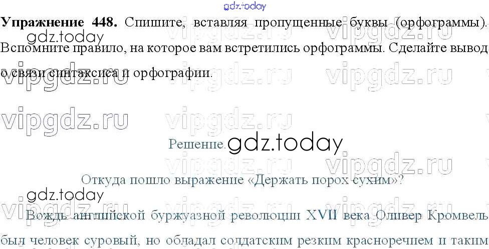 Ответы к Решение к упражнениям 448 Учебнику по Русскому языку для 8 класса Тростенцова, Ладыженская Просвещение 2014