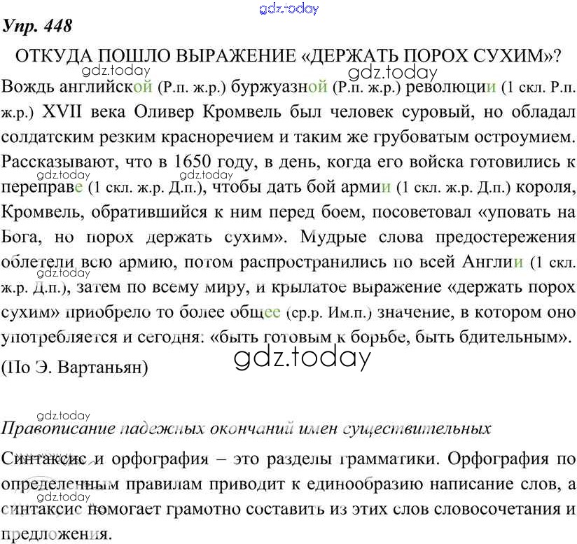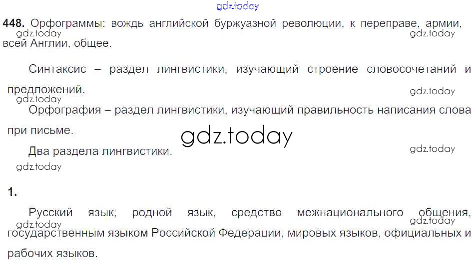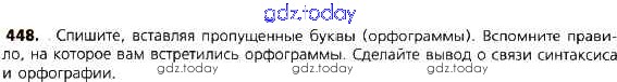 На страницах сайта gdz.today вы найдете учебный и вспомогательный материал, направленный на улучшения знаний школьной программы. ГДЗ - онлайн мир знаний Решение к упражнениям 448 Учебнику по Русскому языку для 8 класса Тростенцова, Ладыженская Просвещение 2014