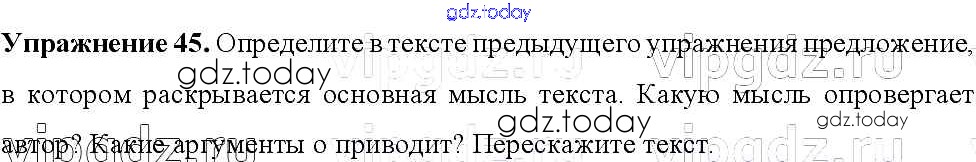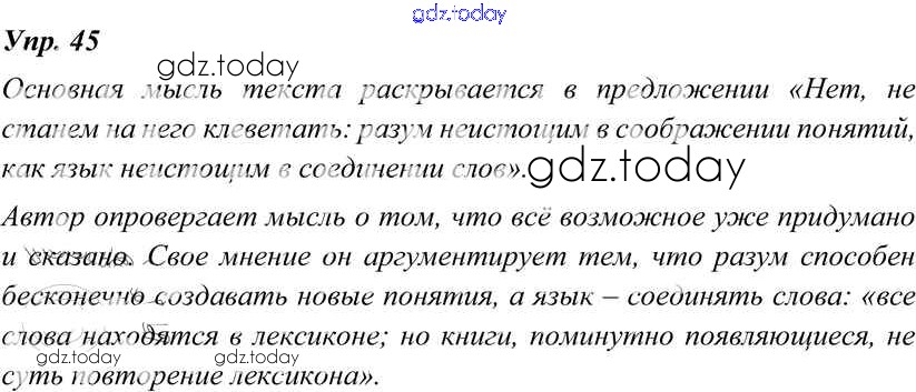 На страницах сайта gdz.today вы найдете учебный и вспомогательный материал, направленный на улучшения знаний школьной программы. ГДЗ - онлайн мир знаний Решение к упражнениям 45 Учебнику по Русскому языку для 8 класса Тростенцова, Ладыженская Просвещение 2014
