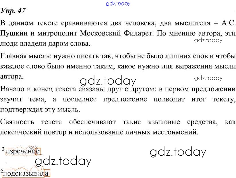 На страницах сайта gdz.today вы найдете учебный и вспомогательный материал, направленный на улучшения знаний школьной программы. ГДЗ - онлайн мир знаний Решение к упражнениям 47 Учебнику по Русскому языку для 8 класса Тростенцова, Ладыженская Просвещение 2014