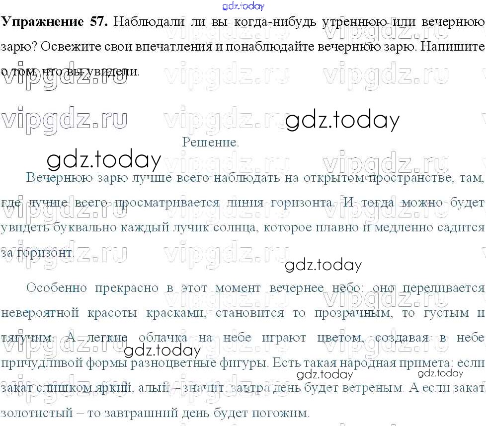 На страницах сайта gdz.today вы найдете учебный и вспомогательный материал, направленный на улучшения знаний школьной программы. ГДЗ - онлайн мир знаний Решение к упражнениям 57 Учебнику по Русскому языку для 8 класса Тростенцова, Ладыженская Просвещение 2014