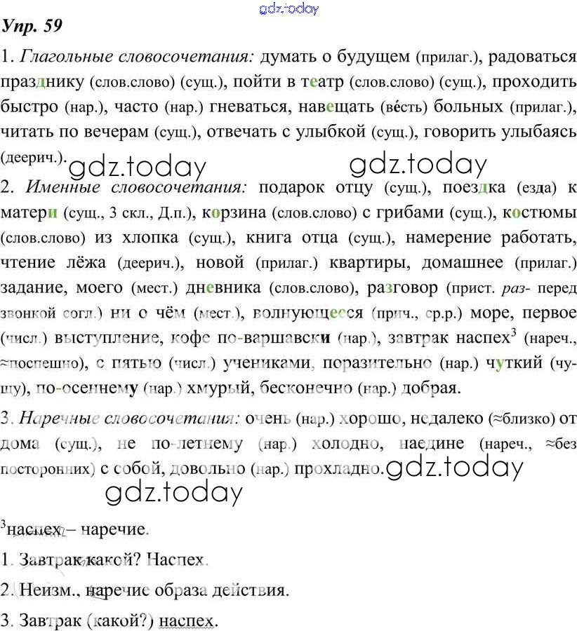 Ответы к Решение к упражнениям 59 Учебнику по Русскому языку для 8 класса Тростенцова, Ладыженская Просвещение 2014