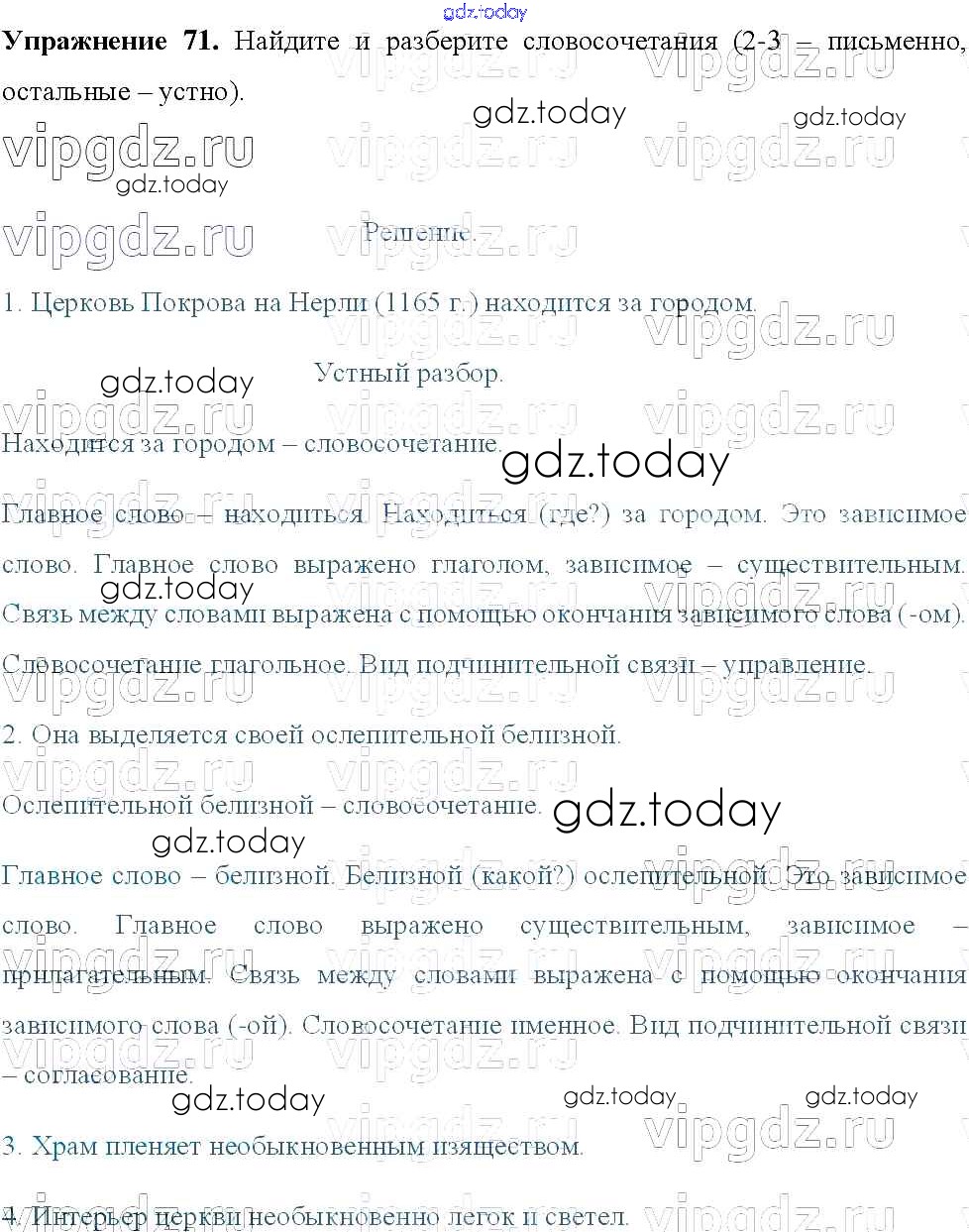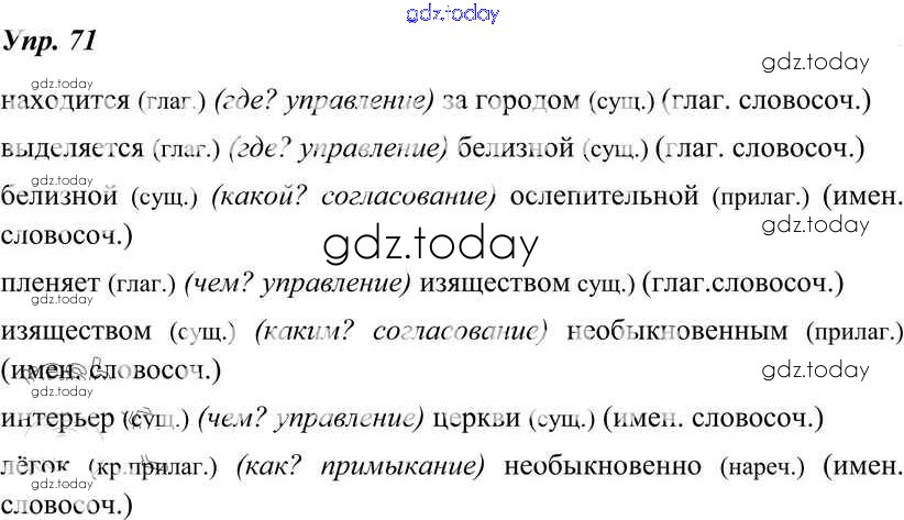 На страницах сайта gdz.today вы найдете учебный и вспомогательный материал, направленный на улучшения знаний школьной программы. ГДЗ - онлайн мир знаний Решение к упражнениям 71 Учебнику по Русскому языку для 8 класса Тростенцова, Ладыженская Просвещение 2014